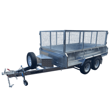• 8×5 Tandem-Axle Galvanised Cage Trailer with 3 ft (900 mm) Cage, Ladder Racks & Slide-Under Ramps 8×5 Tandem-Axle Galvanised Cage Trailer with 3 ft (900 mm) Cage, Ladder Racks & Slide-Under Ramps $3,980.00