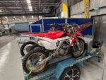 8×5 single axle motorbike trailer with checker plate floor, tie-down points, ramp, 14″ Sunraysia wheels, and optional brakes. Carries up to 3 bikes. Kindly verify specifications when ordering.