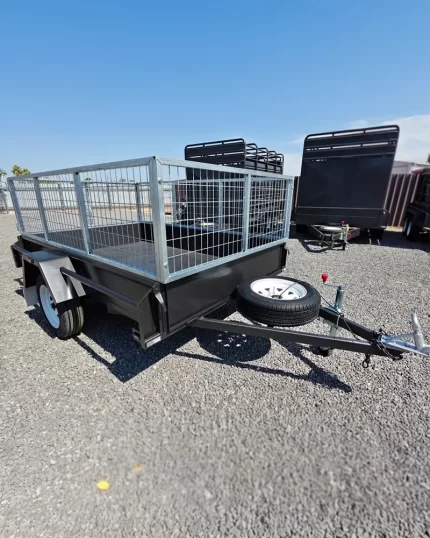 8×5 heavy duty single axle trailer with 3 ft (900 mm) galvanised cage. Fully welded, rust-resistant build with 1,400 kg ATM, optional brakes, long drawbar, and LED lights. Ideal for commercial loads. Kindly verify specifications when ordering.
