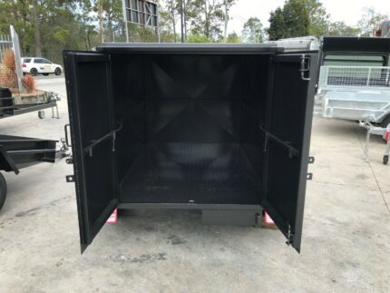 9×5 ft tandem axle fully enclosed cargo trailer with 6 ft internal height. Galvanised finish, rear barn doors or ramp, heavy-duty rocker roller suspension, electric brakes, checker plate mudguards, and 2000 kg ATM. Ideal for secure luggage, tools, or transport. Kindly verify specifications when ordering.